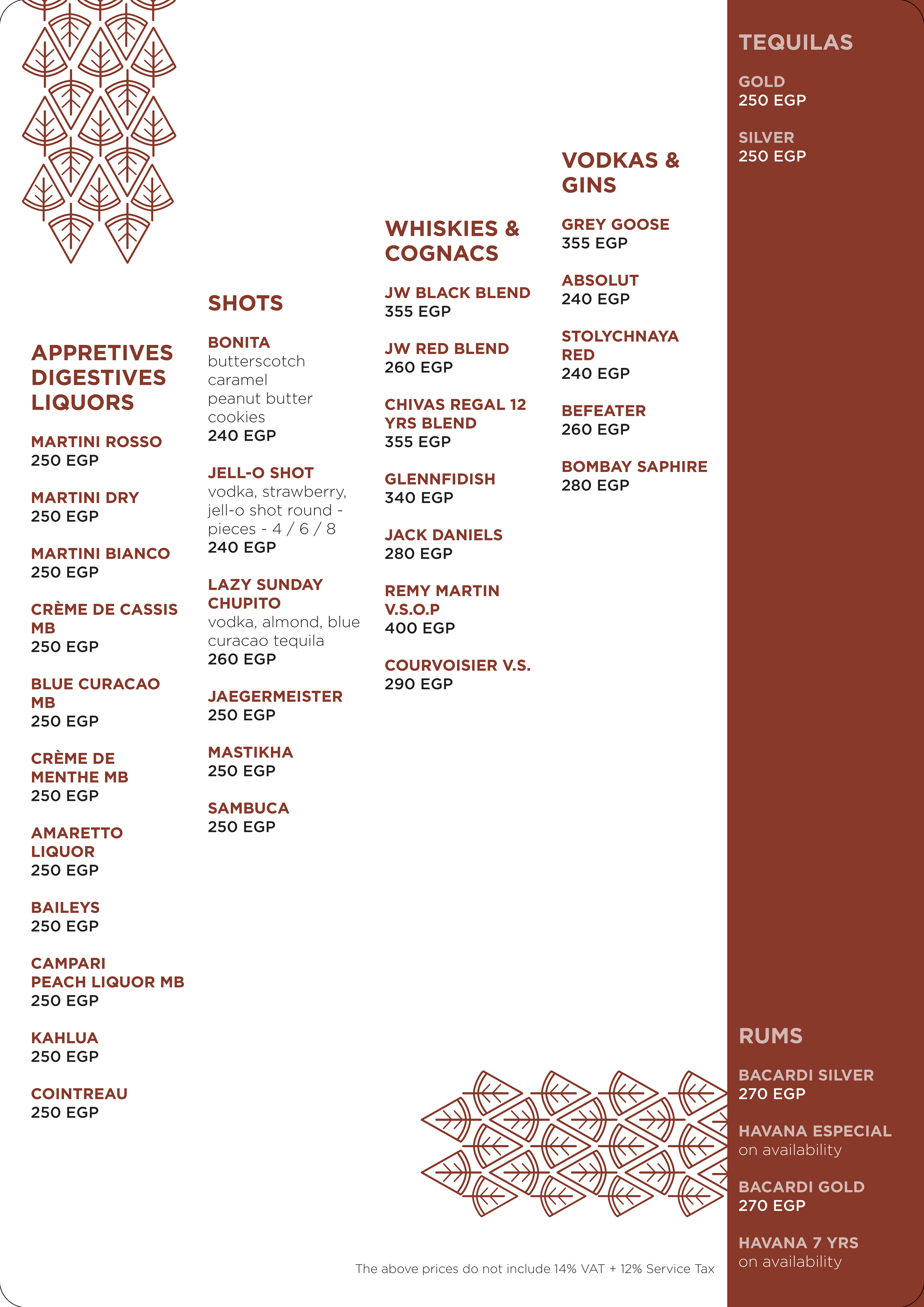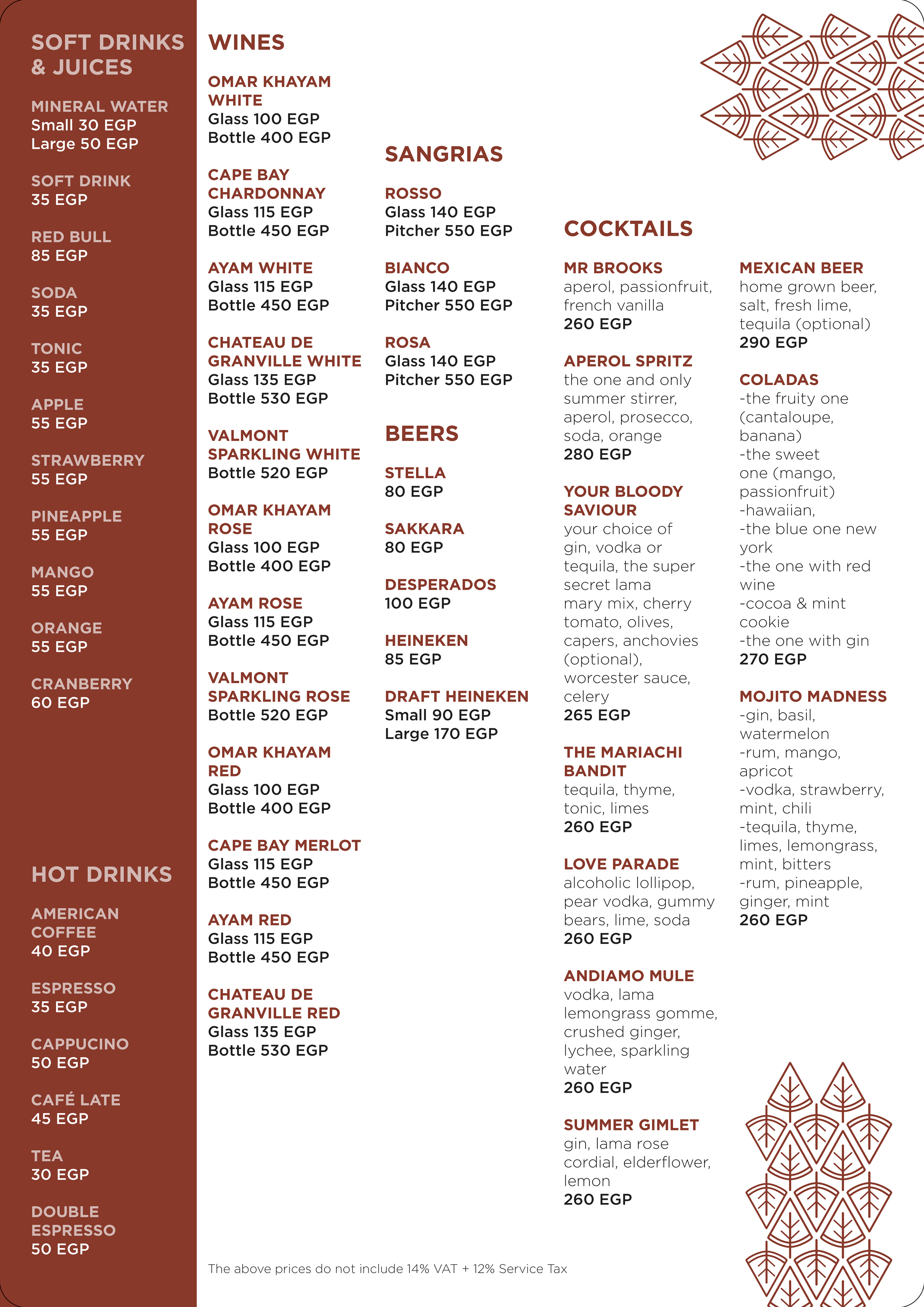 Andiamo Pool Bar Menu
